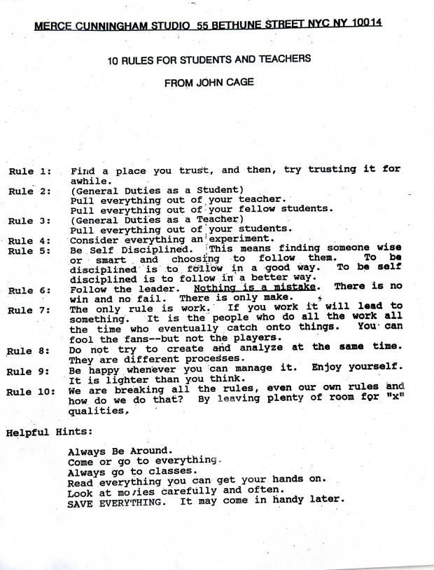 The featured image on this post is John Cage’s 10 Rules for Students and Teachers.