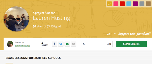 I’m developing a collaboration with Elizabeth Winslow, the band director at Richfield Senior High School, in order to bring high-quality brass instruction to her band kids. I’ll be offering private lessons, clinics, chamber ensembles, and sectionals- but I’m going to need your help to do it. Donating to my campaign will help pay for my time, skills, and program development. There will be more content as the program begins and I meet the kids, so stay tuned.