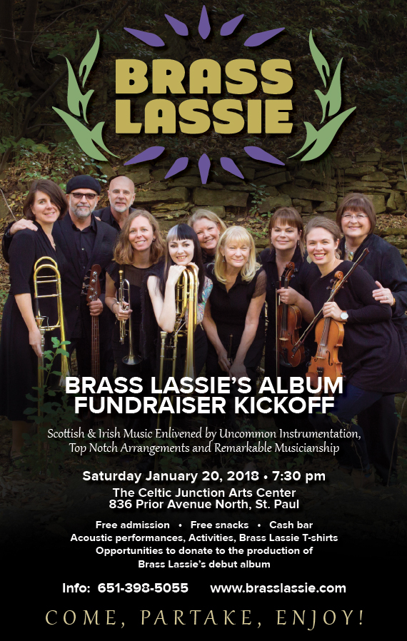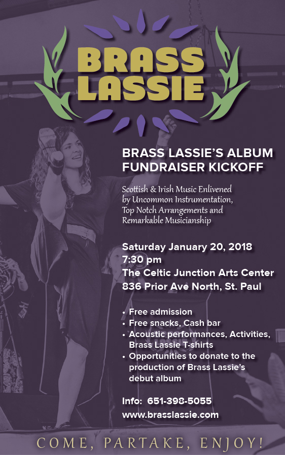 Brass Lassie is getting ready to go into the studio to record our debut album- but we need your help to do it! Join us on January 20th, 2018, at the Celtic Junction Arts Center as we launch our funding campaign to bring our music to you.